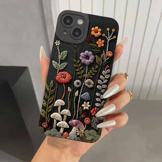 آيفون 16E 16 15 14 13 12 11 برو ماكس حافظة تنقش نمط الأزهار رسمت غطاء الهاتف آيفون XS X XR 7 8 Plus SE2 Fundas