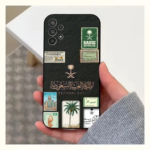 حافظة هاتف سلمان المملكة العربية السعودية لهاتف سامسونج S25,S24,S23,S22,S20,S21,S10,Ultra,Plus,Lite,FE,غطاء أسود من السيليكون الناعم