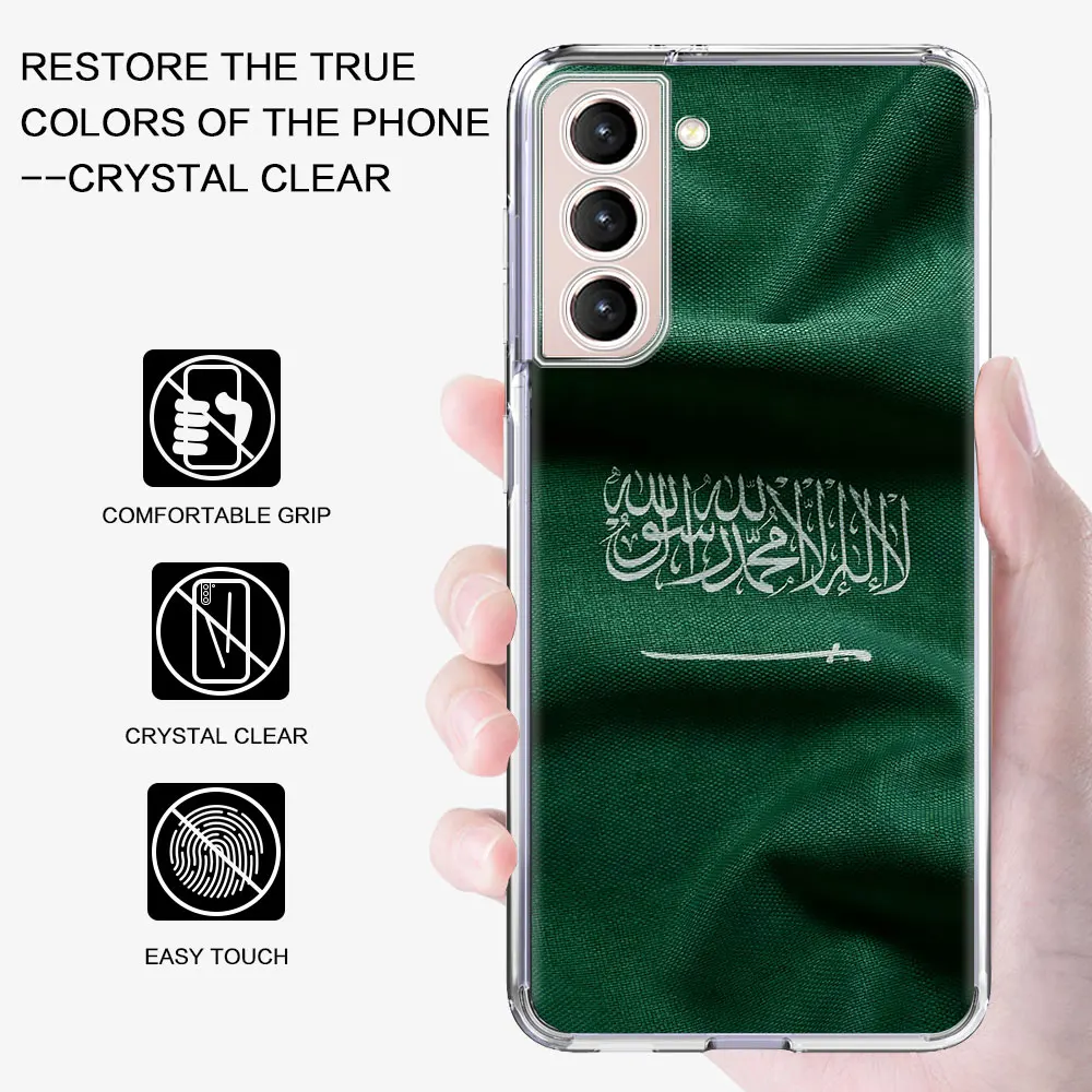المملكة العربية السعودية العلم الحال بالنسبة لسامسونج غالاكسي S20 S22 S23 S24 الترا S21 FE S10e S8 S9 زائد S10 لايت غطاء الهاتف البولي يوريثان شل