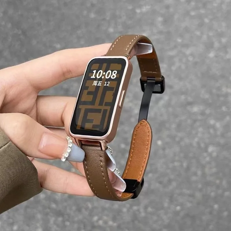 حزام من الجلد لهواوي الفرقة 10/9/8 حزام الساعات المغناطيسي استبدال المعصم الرياضة حلقة سوار لهواوي Smartband 9 8 10