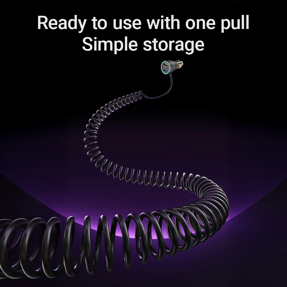 كابل زنبركي USB-C مدمج: يضمن التصميم الملفوف عدم تشابك الأسلاك ويلغي الحاجة إلى كابلات متعددة.يمتد إلى الطول المطلوب، مما يحافظ على لوحة قيادة نظيفة ومرتبة بدون فوضى.
