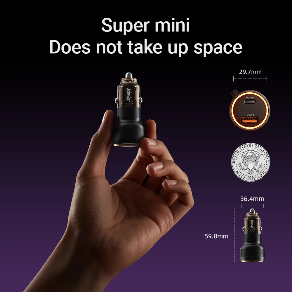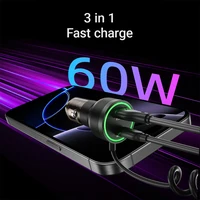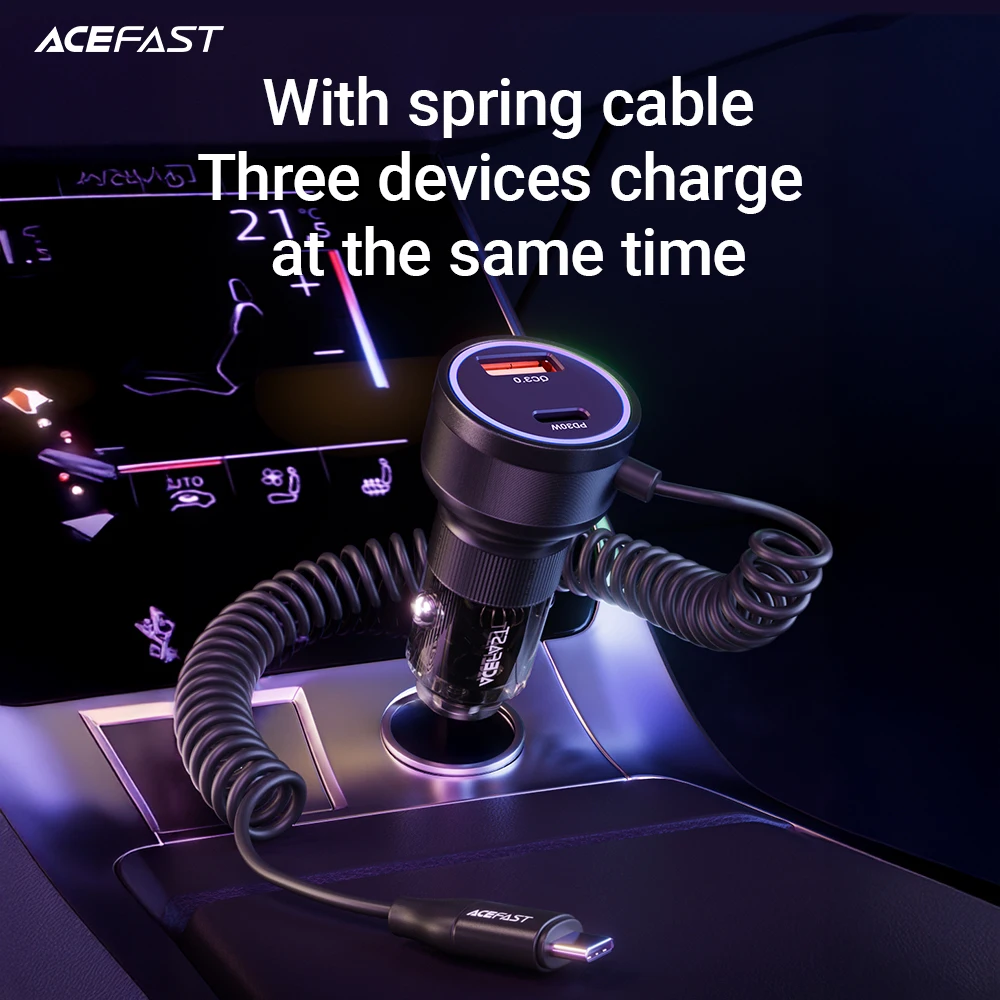 شحن سريع متعدد الأجهزة: شاحن سيارة ACEFAST بقدرة 60 وات مزود بكابل من النوع C بقدرة 30 وات شحن سريع لسلسلة iPhone 16/15/لسلسلة Samsung S24/S23/S22، PD30W، QC3.0 18 وات، يدعم PD3.0/QC3.0/AFC وFCP بروتوكول الشحن فائق السرعة.يمكنه شحن ثلاثة أجهزة في وقت واحد.
