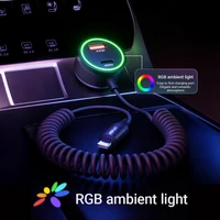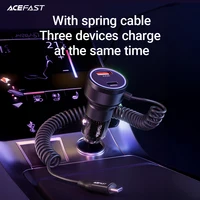 شاحن سيارة ACEFAST 60 وات مع كابل زنبركي USB C لهاتف iPhone 16/15/14 Pro Max مع محول شحن سريع بإضاءة RGB لهاتف Samsung S25
