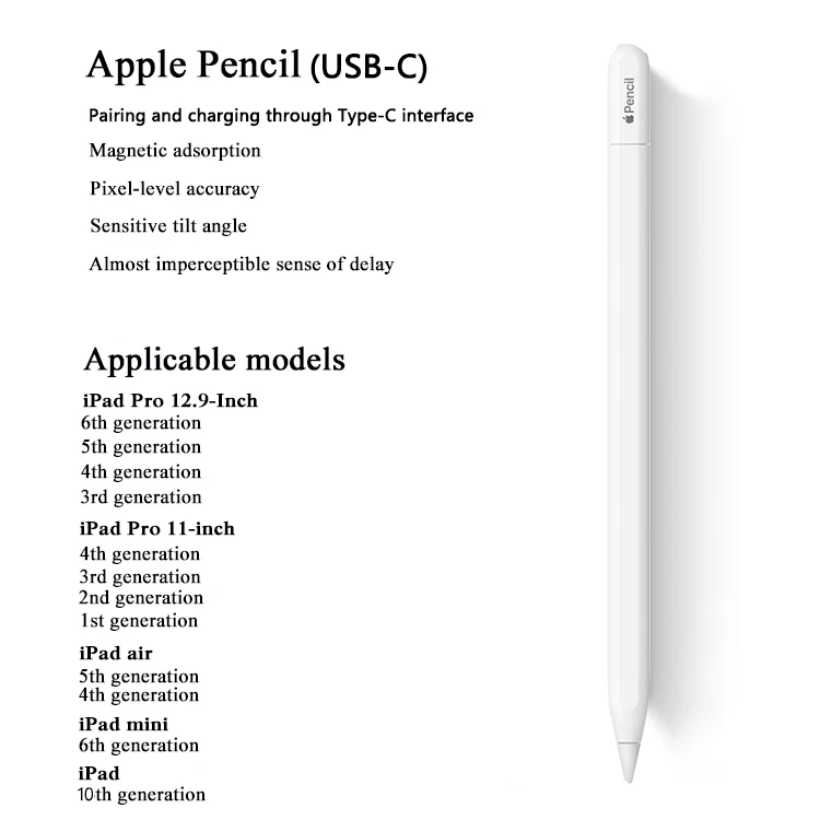 قلم رصاص Apple 1st 2nd USB-C قلم لمس للكمبيوتر اللوحي iOS مع شاشة عرض طاقة لجهاز iPad 10 Pro 11 Pro 12.9 air 3 4 5 mini 5 6