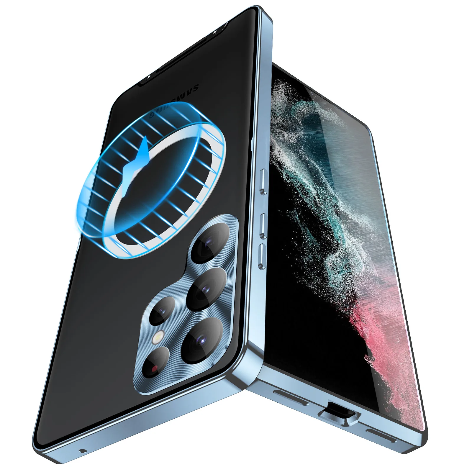 مناسبة لهاتف Samsung S25Ultra Magnetic Phone Case S24Ultra Magic Shield حافظة هاتف محمول معدنية شاملة