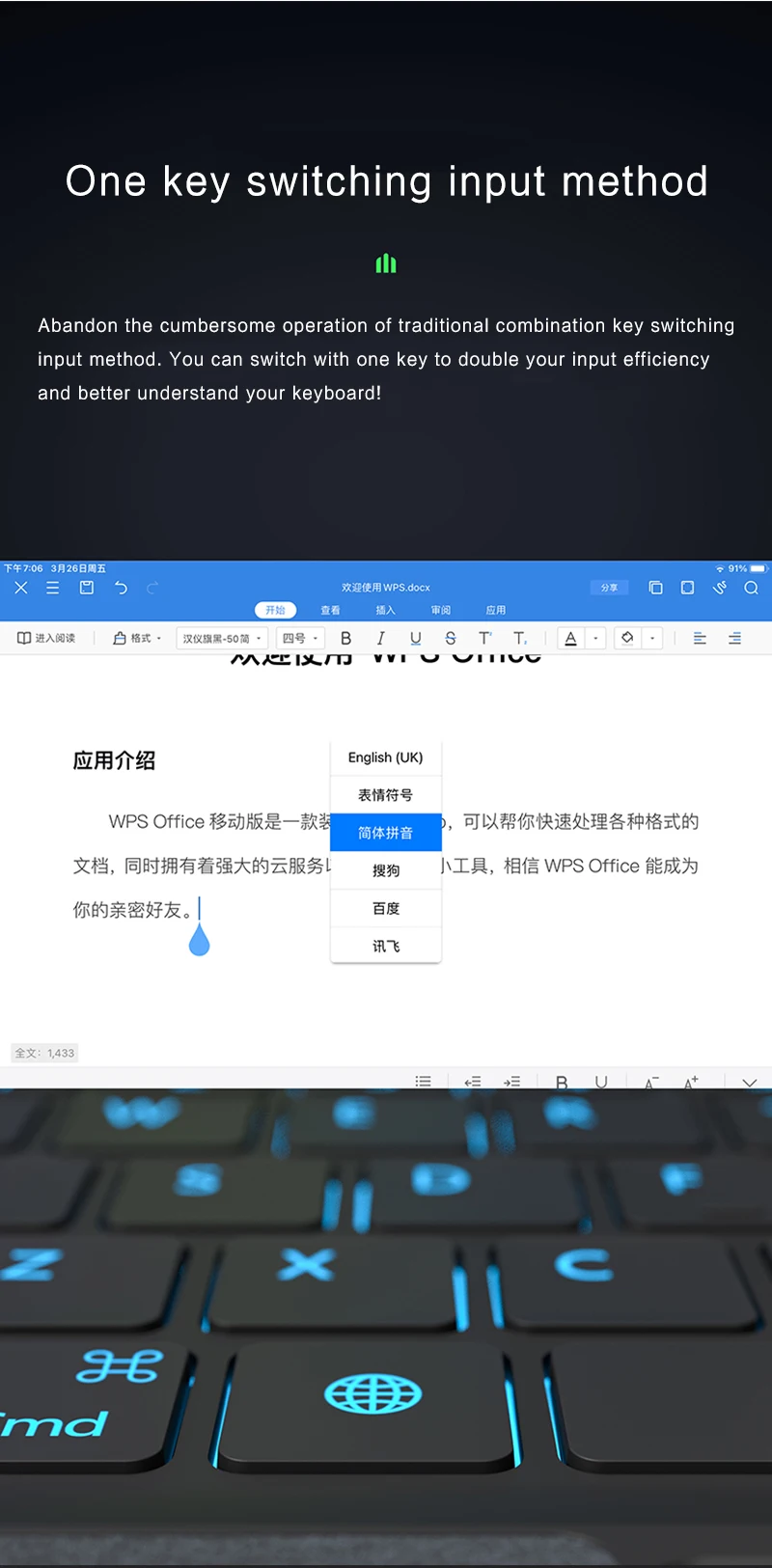 4 、 يمكن أن تدعم فصل باد ولوحة المفاتيح. إنه مغناطيسي