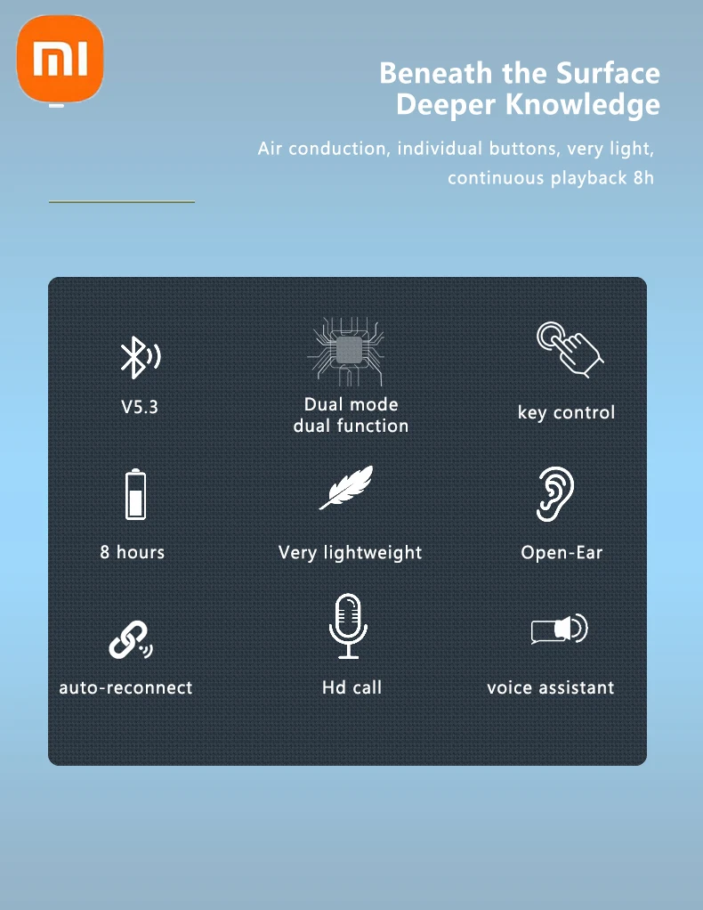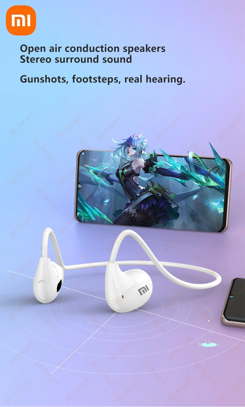 Xiaomi سماعة لاسلكية تعمل بالبلوتوث 5.3 سماعات توصيل العظام مقاوم للماء سماعة ستيريو فوق الأذن سماعات أذن رياضية مع ميكروفون